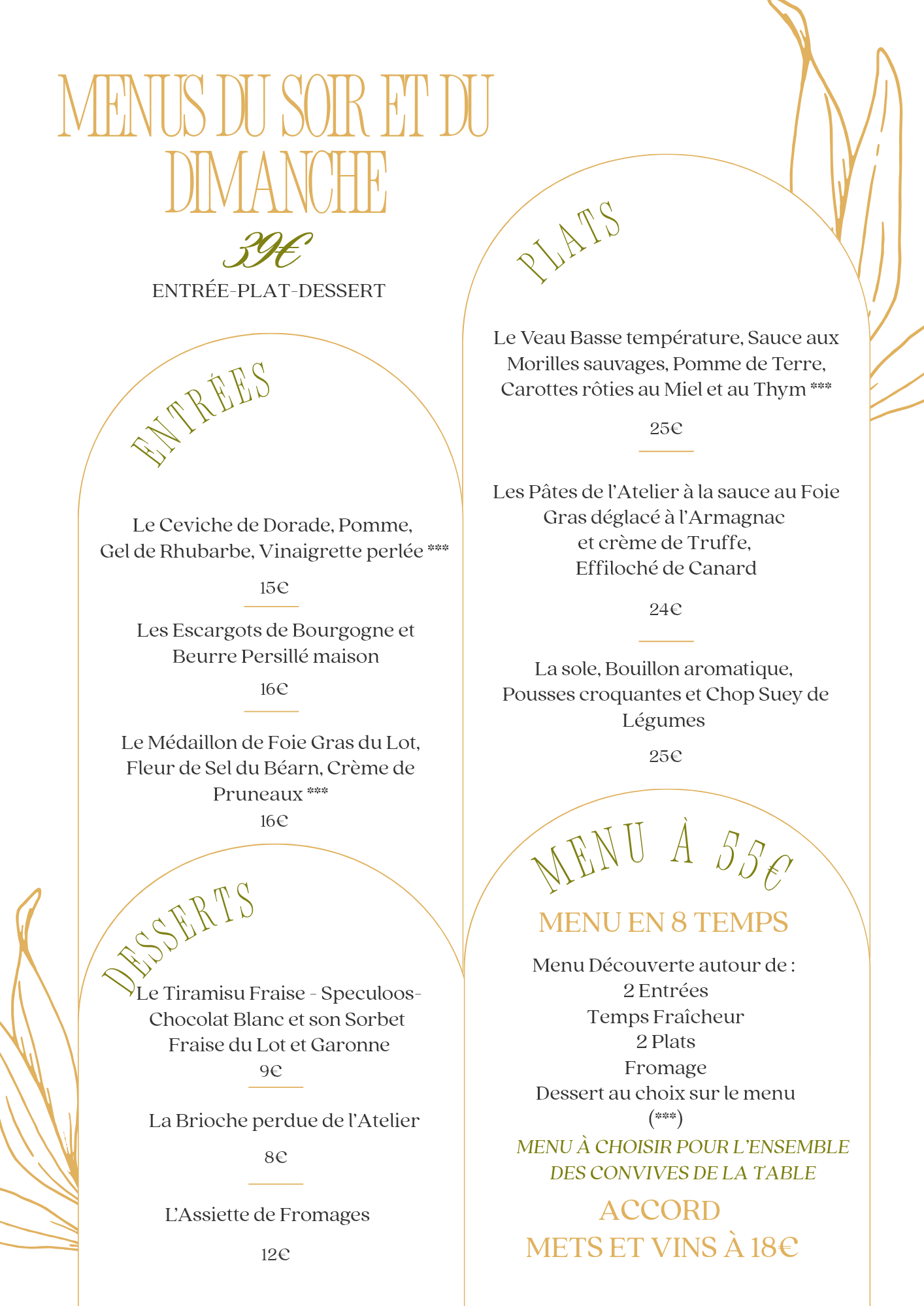 Du matin au soir l'Atelier vous accueille pour des boissons chaudes ou fraîches, une formule du midi, des salades, tartines et planches gourmandes, une carte l'après-midi pour les gouters et petites faims, le tout avec des produits locaux et de saison.